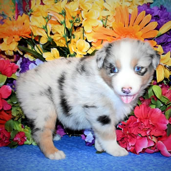 "Gladys" Cooper Plays: Mrs. Higgins Red Merle Female New Home: James, Carrye, Will & Jeanne - Durango, Colorado