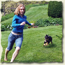 I must say I was very skeptical of looking for a dog over the Internet but it was a wonderful journey. I had spent hours on the Internet searching, reading and looking for the right puppy/situation for us. I had looked at thousands of puppies, breeders and sites (according to my husband) and kept going back to Desert Willow. After checking out Theresa's website and looking/reading it several times I kept going back to the "litters" page. At the very bottom of the page there's the Breeders with a captial B. Well, I was sold after reading this. I thought to myself...she is my kind of person if she believes this and this is the Breeder for me.